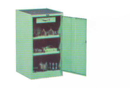Ket : Cabinet is constructed of carefully welded high quality sheet metal 1.4 mm thickness with ,one swing doors, runs on hinge, one lock fixed on handle, one adjustable shelf on its height.