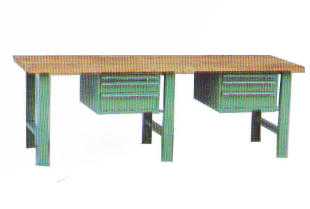 Ket : The workbench is equipped with two drawer block,tthree legs and bench top.legs welded construction of sheet steel 2.8mm thickness,solidly joined by a truss to provide increases stability.
